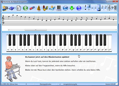 Auf einer virtuellen Klavier-Tastatur oder über ein angeschlossenes Keyboard können die Noten eingegeben werden und direkt gehört werden.